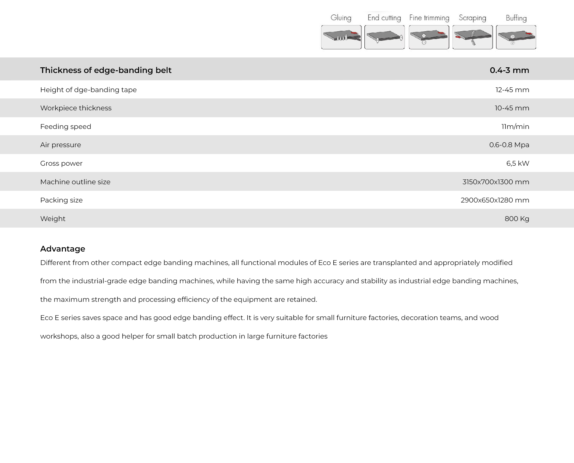 The Edge Banding E5 is a reliable and efficient edge banding machine designed for precision, speed, and ease of use. Perfect for small to medium-sized workshops, this machine delivers consistent, high-quality edge finishes on MDF, plywood, particleboard, and similar panel materials.