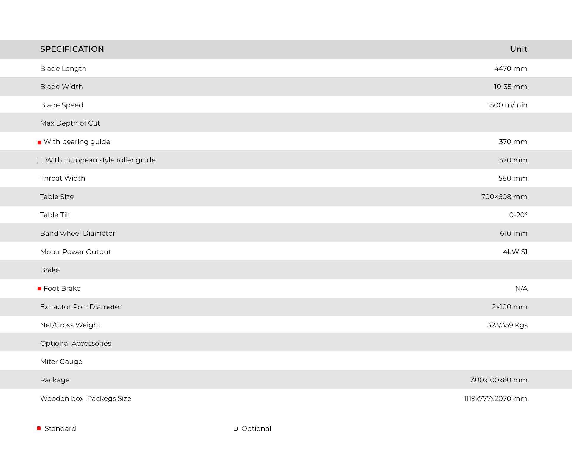 With blade tension capabilities of up to 20,000 PSI, and a cutting speed of 1,500 m/min, the 65BS delivers smoother, faster results with an excellent surface finish. Whether you’re resawing hardwoods or handling large volumes of production work, this machine is built to meet the challenge.