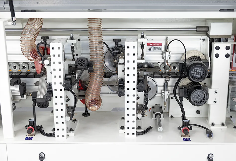 The heavy-duty feeding system ensures consistent panel movement, minimizing vibration and delivering precise alignment throughout the edging process.