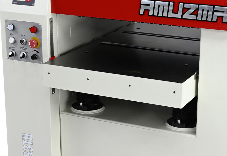 Equipped with variable feed speeds, electronic table adjustment, and digital positioning control, this machine offers complete control for thicknessing various wood types with maximum accuracy. A spring-loaded pressure bar and four-column table support ensure smooth, stable operation — even under heavy loads.